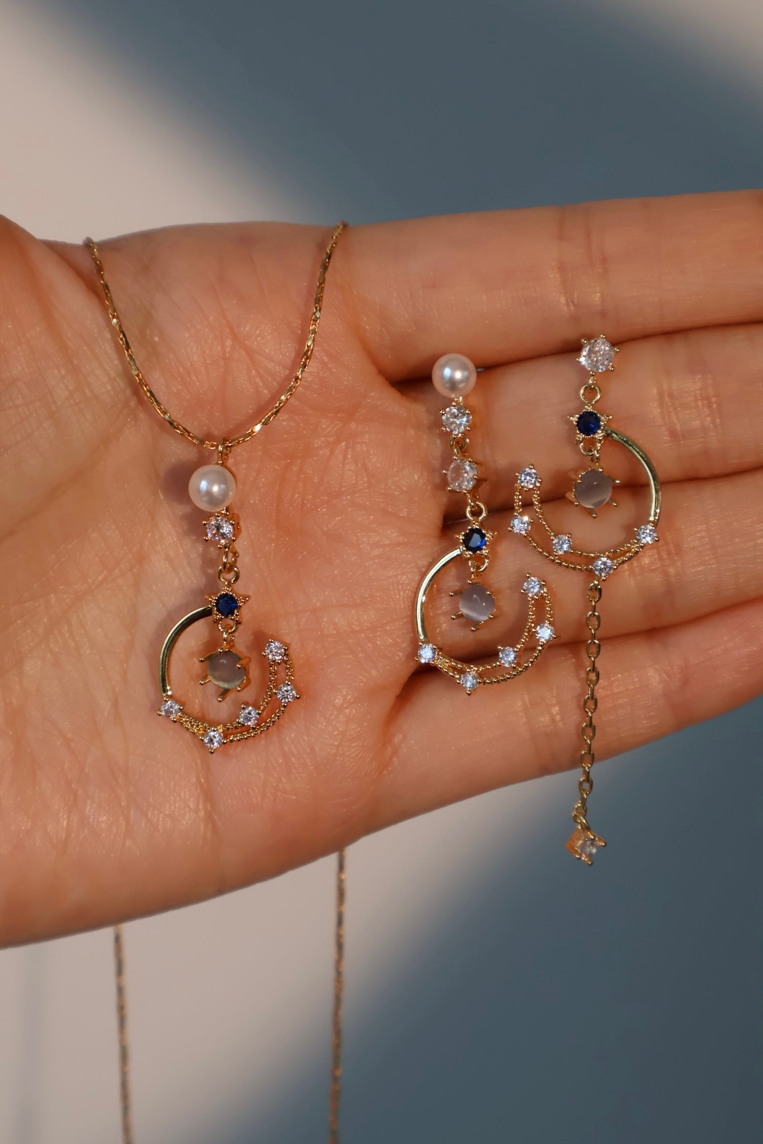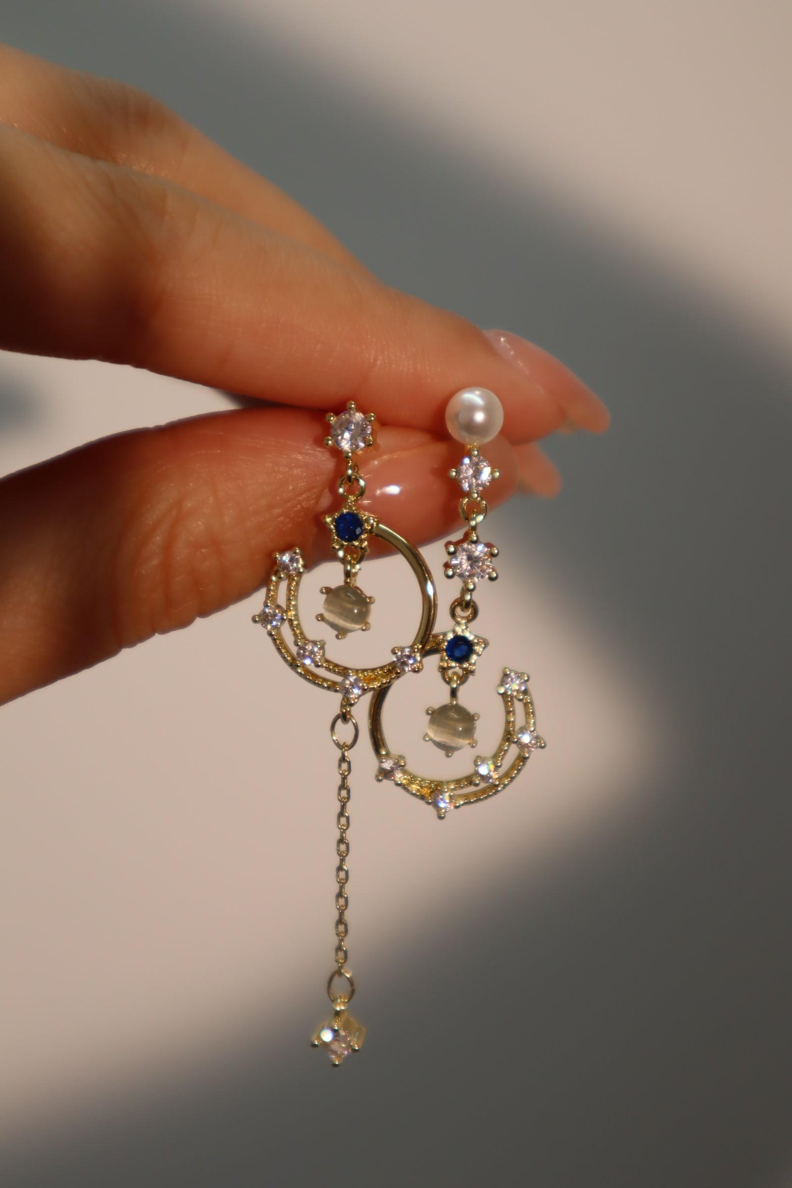 - 14K Real Gold plated + High quality zirconia diamonds & moonstones + synthetic pearl