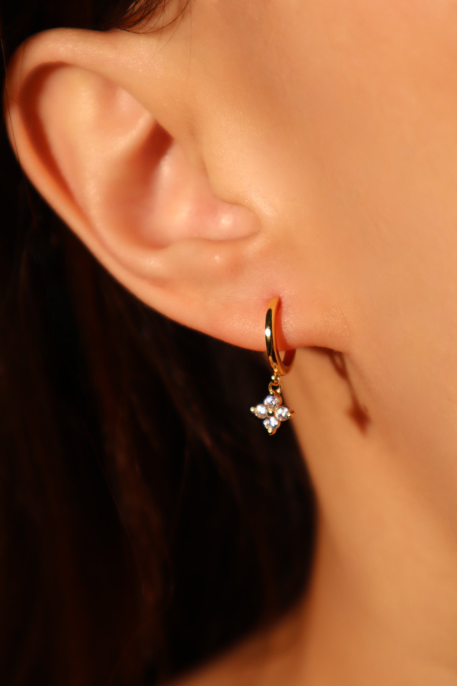 Our 18K Gold Vermeil Lucky Leaf Hoop Earrings are ethereal. This pair of earrings is adorned with high quality zirconia diamonds that sparkle and shine angelically. When you can’t decide on a look, match these earrings with your outfit to be your saving grace!