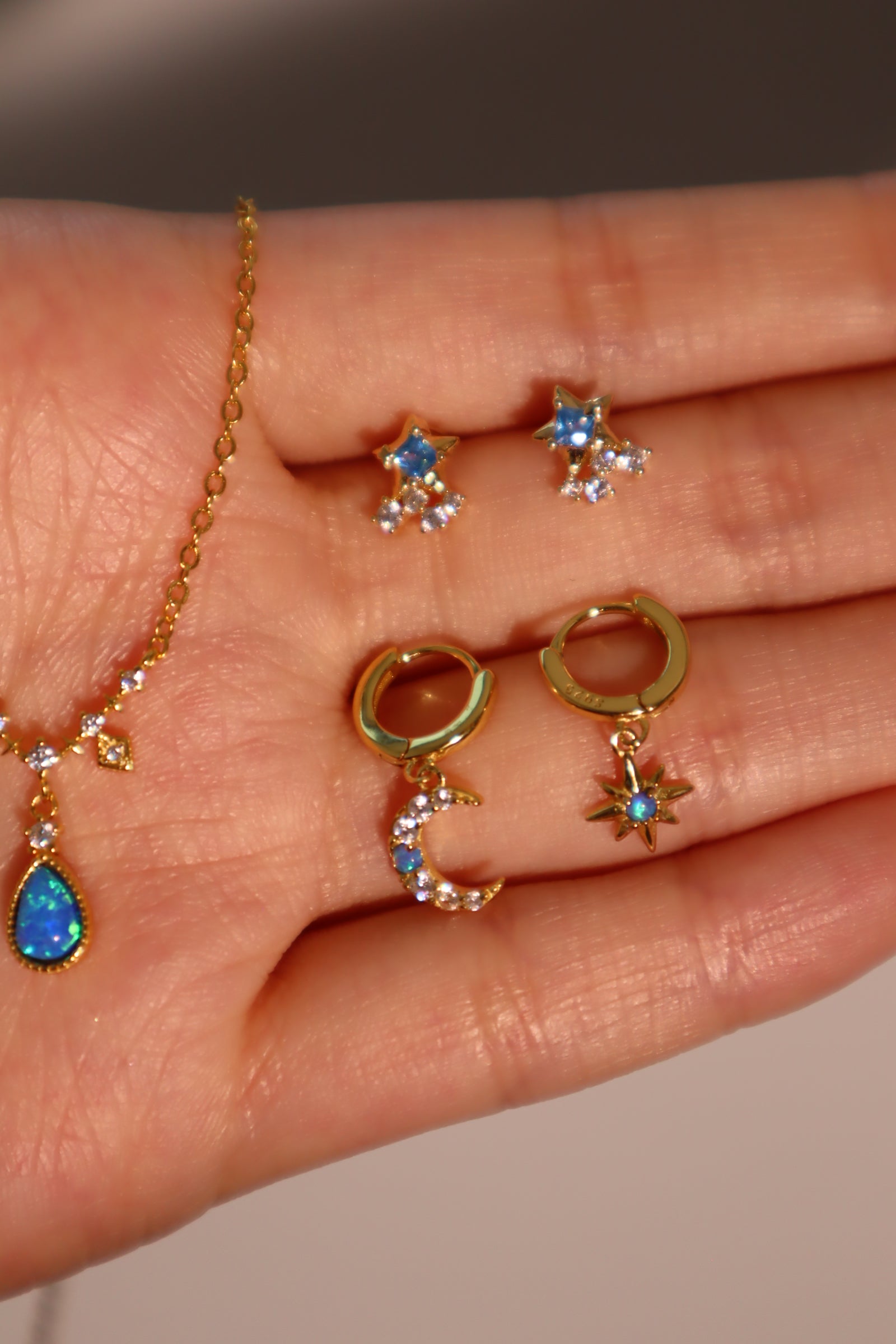 18K Gold Vermeil Moon Star Blue Opal earrings