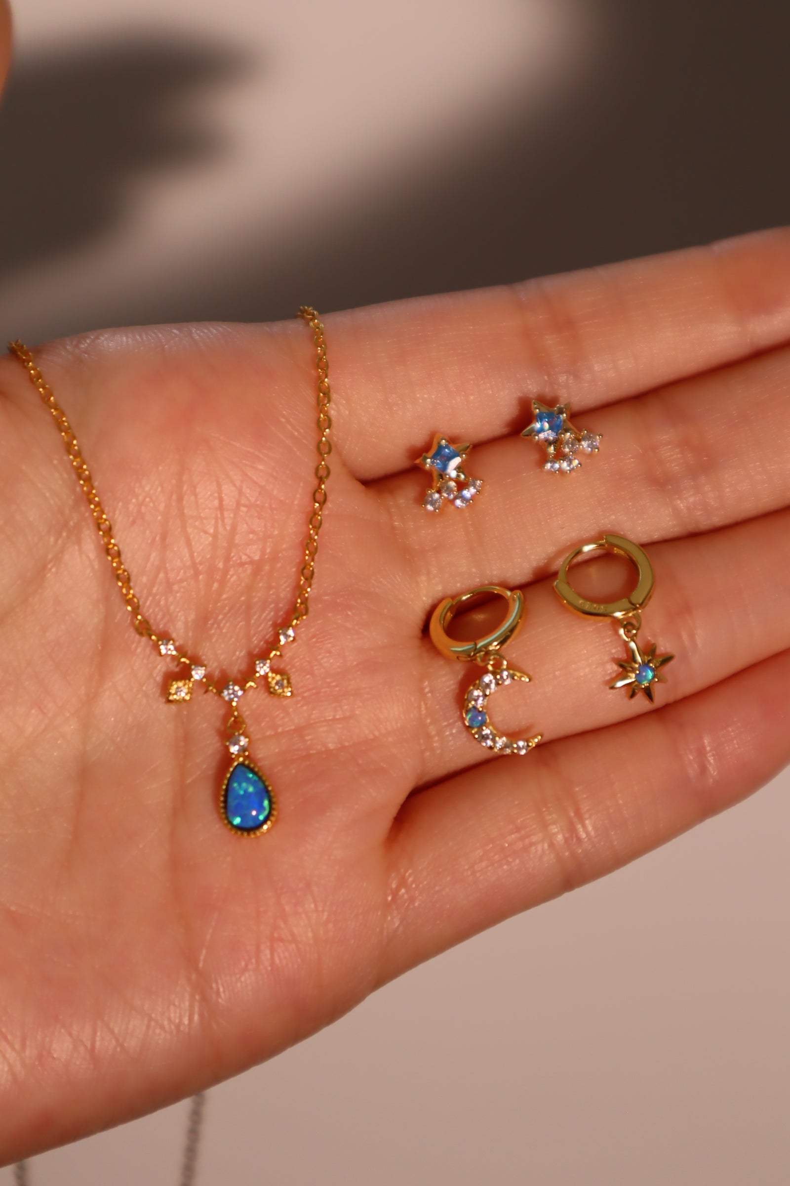 Our 18K Gold Vermeil Moon Star Blue Opal earrings are ethereal. This pair of earrings is adorned with high-quality gemstones that sparkles and shines angelically. When you can’t decide on a look, match these earrings with your other earrings to be your saving grace!