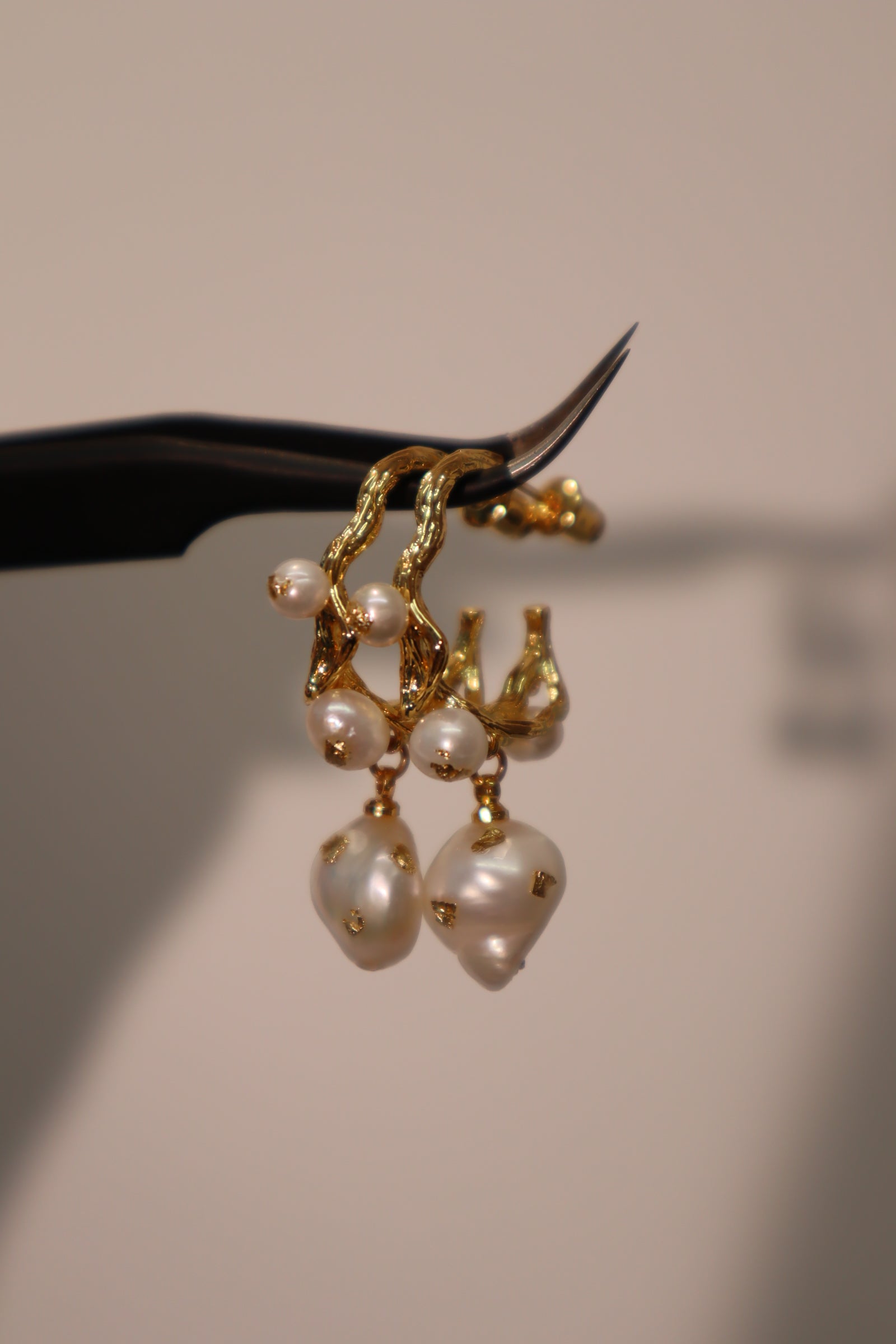 Our Gold Foil Pearls Earrings are ethereal. This pair of earrings is adorned with quality gold foil pearls that shine angelically. When you can’t decide on a look, match these earrings with your other earrings to be your saving grace!