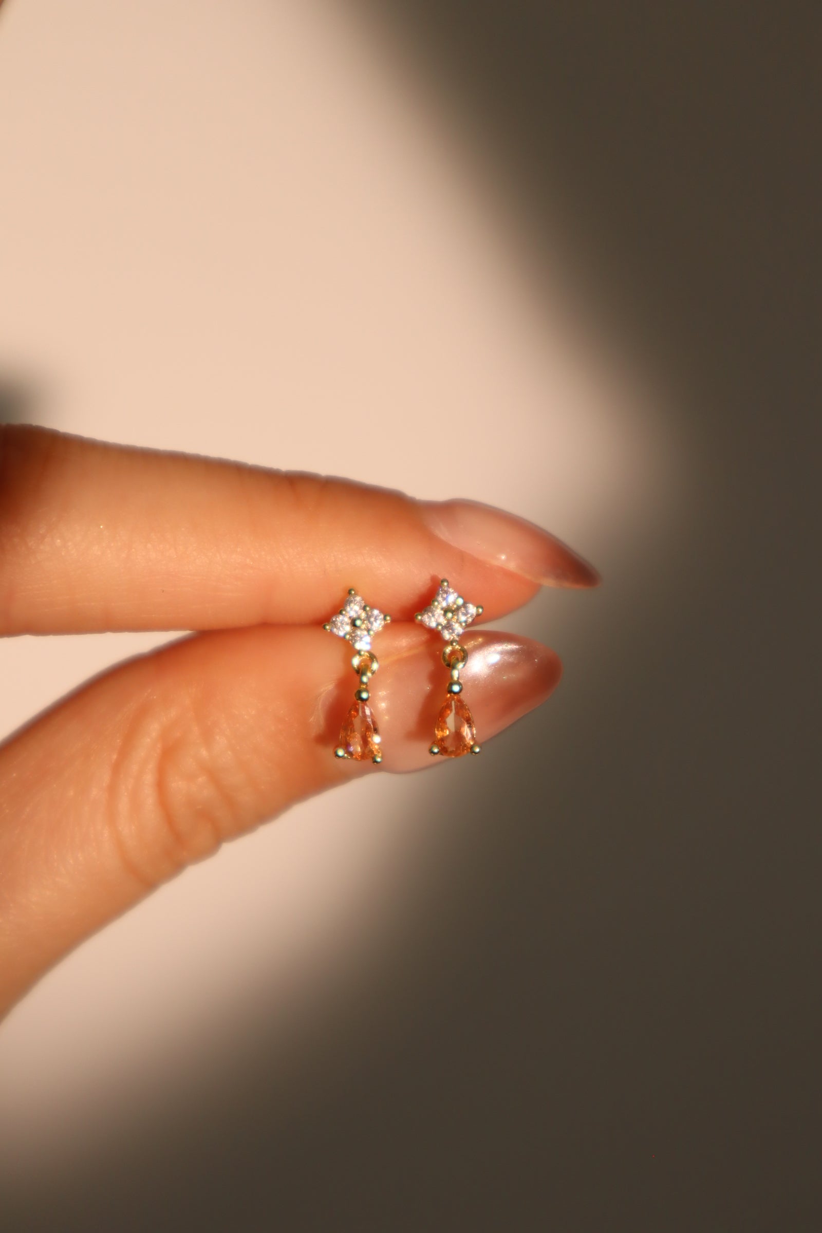 - 18K real gold plated + well-cut zirconia diamonds + zirconia orange gemstones