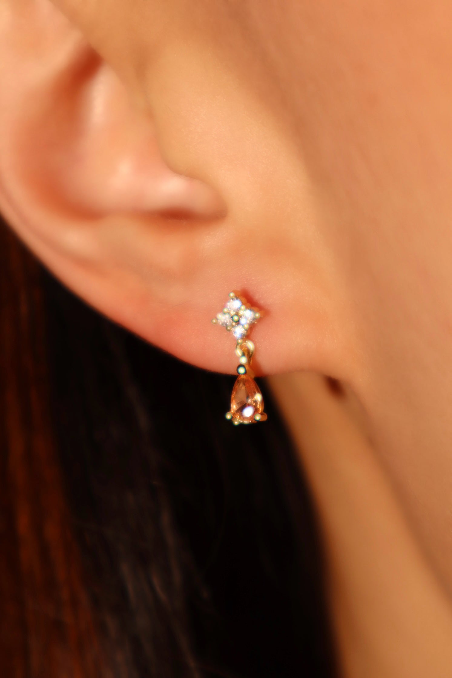 Our 18K Real Gold Plated Lucky Leaf Droplet Earrings are ethereal. This pair of earrings is adorned with high quality zirconia diamonds that sparkle and shine angelically. When you can’t decide on a look, match these earrings with your outfit to be your saving grace!