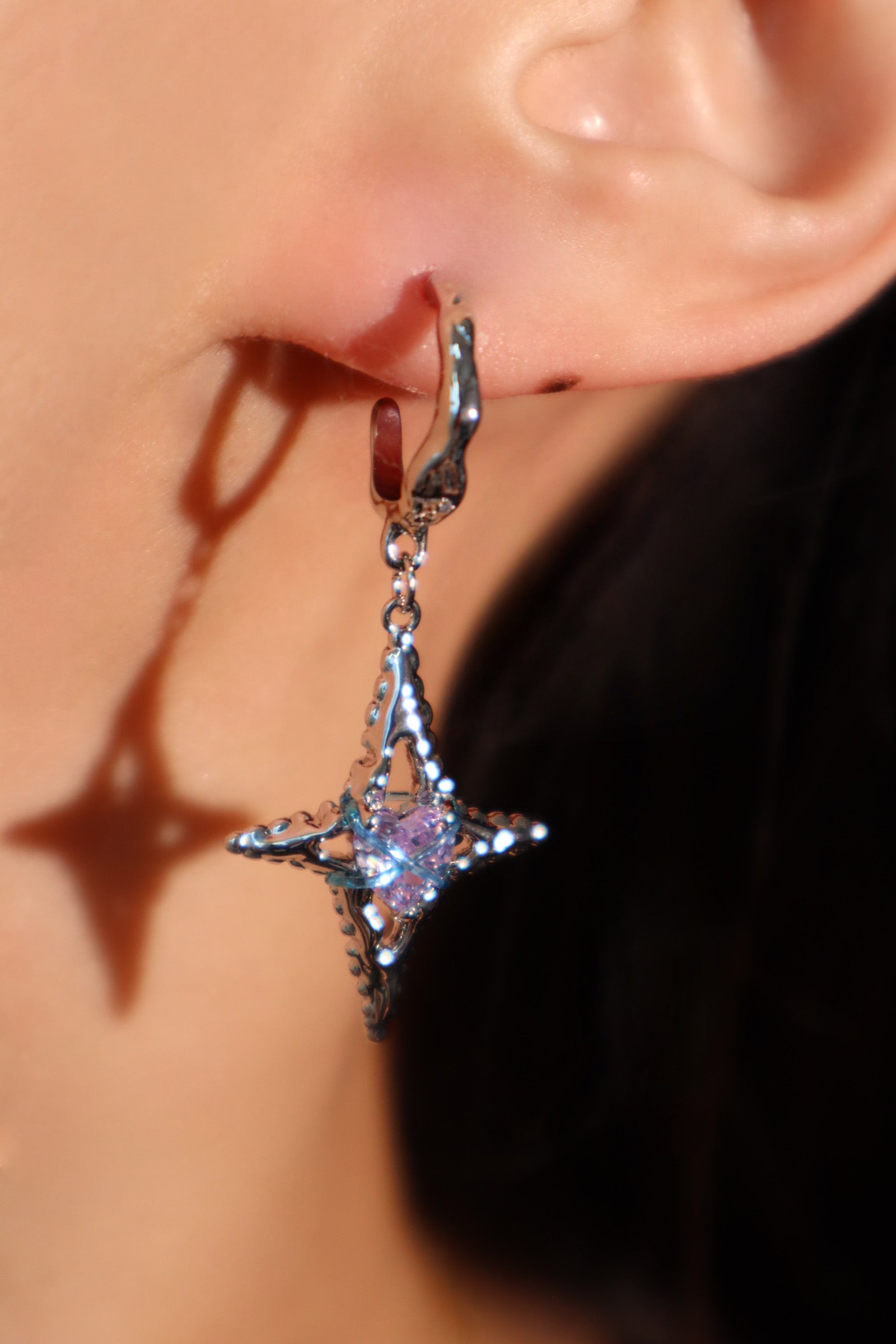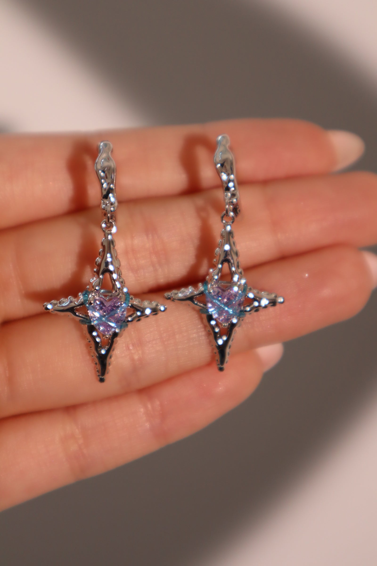 Platinum Plated Blue Cross Purple Gem Star Earrings